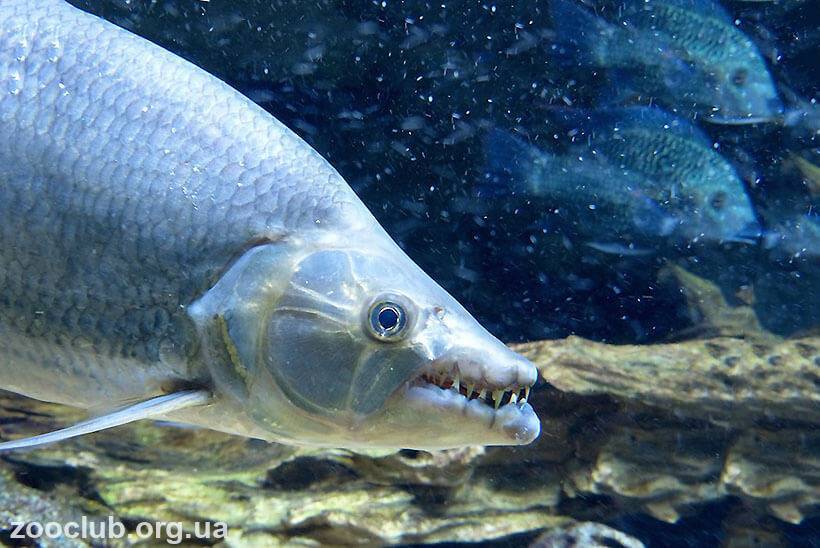 Дело в том, что в природе гигантский гидроцин вырастает до 150 см и может весить около 50 кг. Один взгляд на ее зубы и вы сразу понимаете что такая рыбка питается далеко не растительностью.