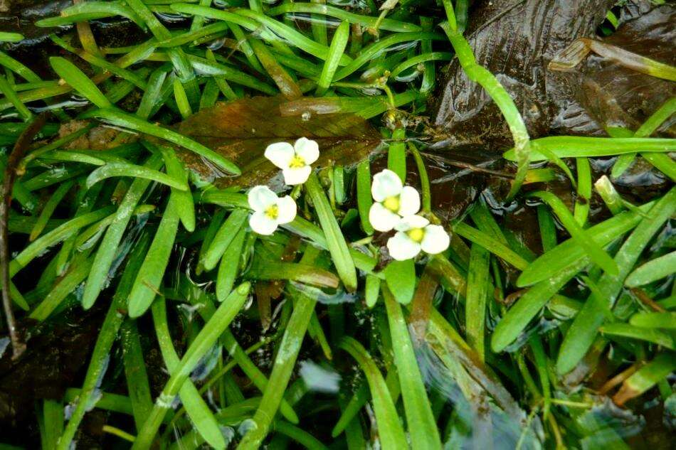 Внешне напоминает пучок травы, так как растет цепочкой. Это растение подойдет для высадки на переднем плане, поскольку листья имеют яркий зеленый окрас, а сам стрелолист низкорослый. Размножается он, как и валлиснерия, побегами, поэтому может быстро распространиться по всему аквариуму.