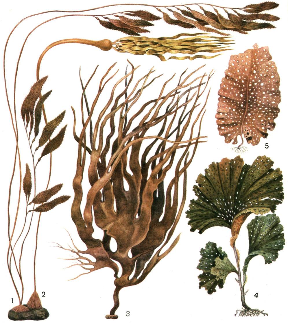 - прикрепленные ко дну, все части которых иногда (кроме генеративных органов) полностью находятся под водой;