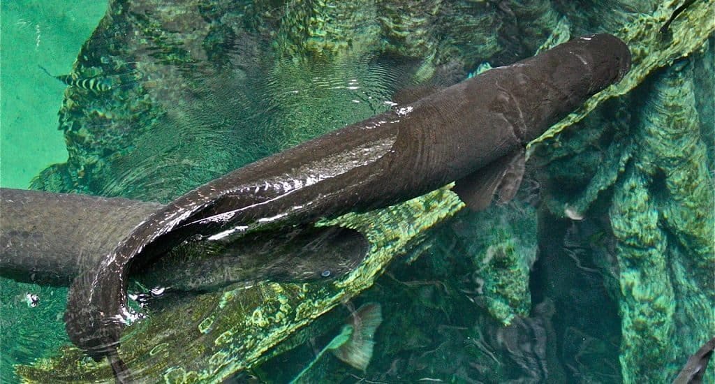 Эта придонная рыба считается настоящим гигантом, так как в среднем достигает 2 м, при этом вес составляет порядка 90 кг.