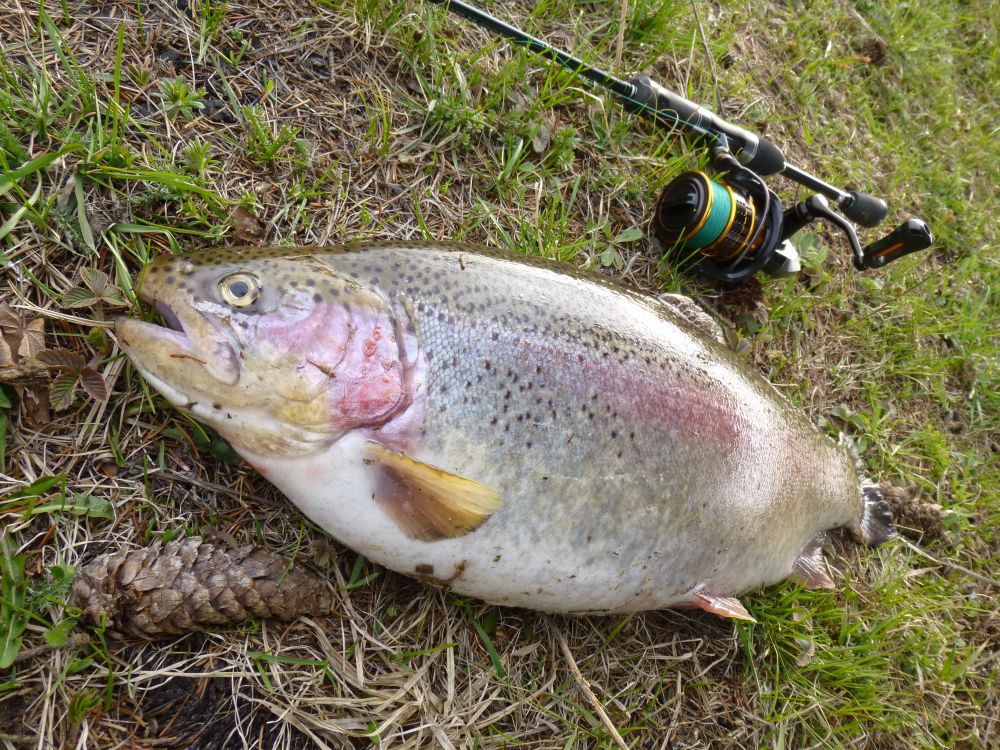 Исправить ситуацию помог стример на джиг-головке массой 3,5 грамма. Короткие скачки по дну – и в зачете не только форели, но и карп, пойманный честно «в рот». На такие же тяжелые (по меркам ареа-фишинга) приманки я ловлю в холодную погоду медленным волочением по дну с короткими остановками – иногда срабатывает так, что сам удивляюсь. Никакой сложной анимации, да и стример весь свой потенциал не раскрывает, однако ловится, и неплохо.