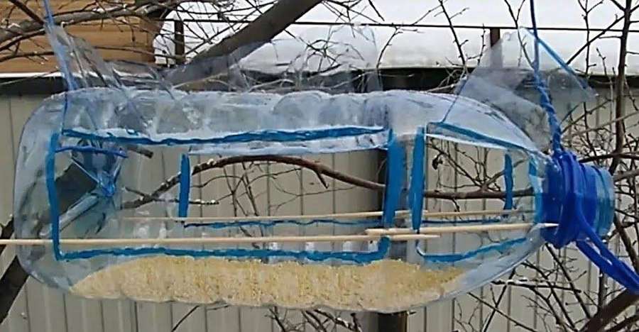 Кормушка для птиц из пластиковой бутылки. Быстро и легко – 10 фото