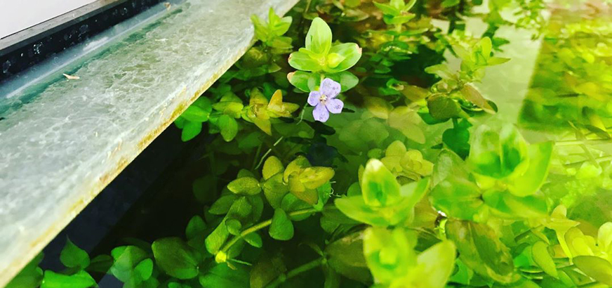 - Если выращивать бакопу в мелком аквариуме, ее побеги перерастут уровень воды и на воздухе она зацветет бледными светло-фиолетовыми цветками.