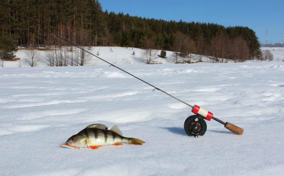 Удилище. Его длина должна составлять 40-60 см. При этом допустимо применять телескопический или цельный хлыст, сделанный из стекло- или углепластика. Пропускные кольца должны обладать большим диаметром. Это позволяет избежать их обмерзания. Многие рыбаки применяют для ловли окуня удочки-кобылки. Они отличаются небольшим весом и легко лежат в руке. Нередко рыболовы делают такие снасти своими руками с учетом анатомических особенностей руки. При наличии соответствующих навыков леску можно быстро смотать и скинуть в лунку.
