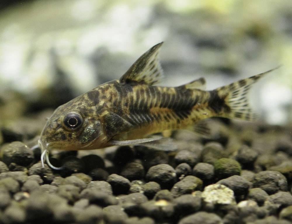 Очень милый и шустрый сомик коридорас. Мы бы сравнили их с померанскими шпицами в мире собак. Донная маленькая рыбка, которая не требует особых условий, питается тем, что сможет найти на дне. Как правило, бывают длиной в 2-10 сантиметров. Не знаете кого посадить в аквариуме – купите коридораса.