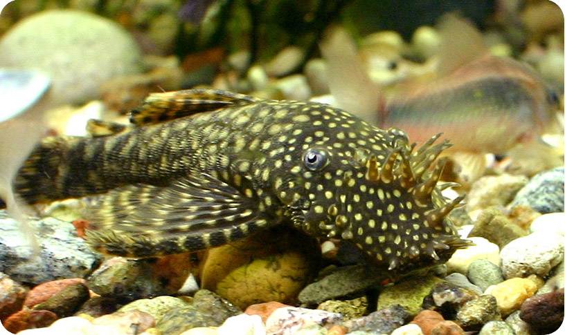 Довольно некрупная рыбка, которая может жить в аквариумах от 30 литров. Классический окрас – коричневый. Часто этих маленьких сомов путают с более крупными собратьями – птеригоплихтами. Вообще, очень трудолюбивая рыбка и хорошо чистить нарастания.