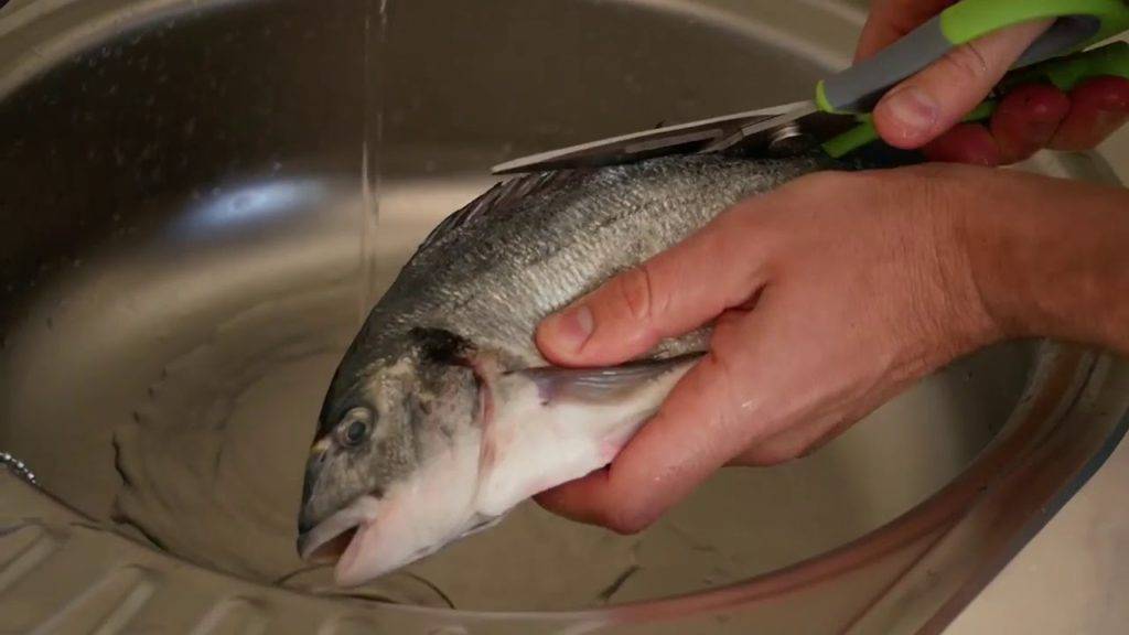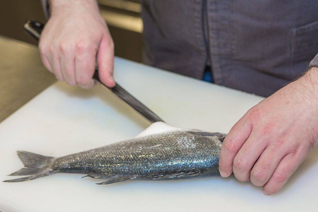- подготовить сибас к «огненной феерии»: удалить внутренности (купируя горечь), промокнуть салфеткой, натереть солью, спрыснуть соком лимона, обвалять в прованских травах;