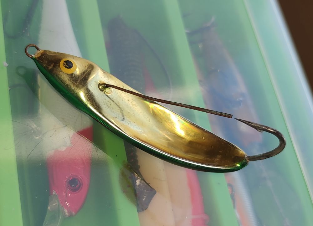 Добился я его с помощью одной-единственной приманки. Это была Rapala Minnow Spoon – своего рода гибрид воблера и «колебалки», исполненный в виде «незацепляйки» с телом из твердого пластика и большим одинарным крючком (хотя есть разновидность с задним тройником на заводном кольце). Приманка (если не считать её же китайских реплик) – пожалуй, уникальная.