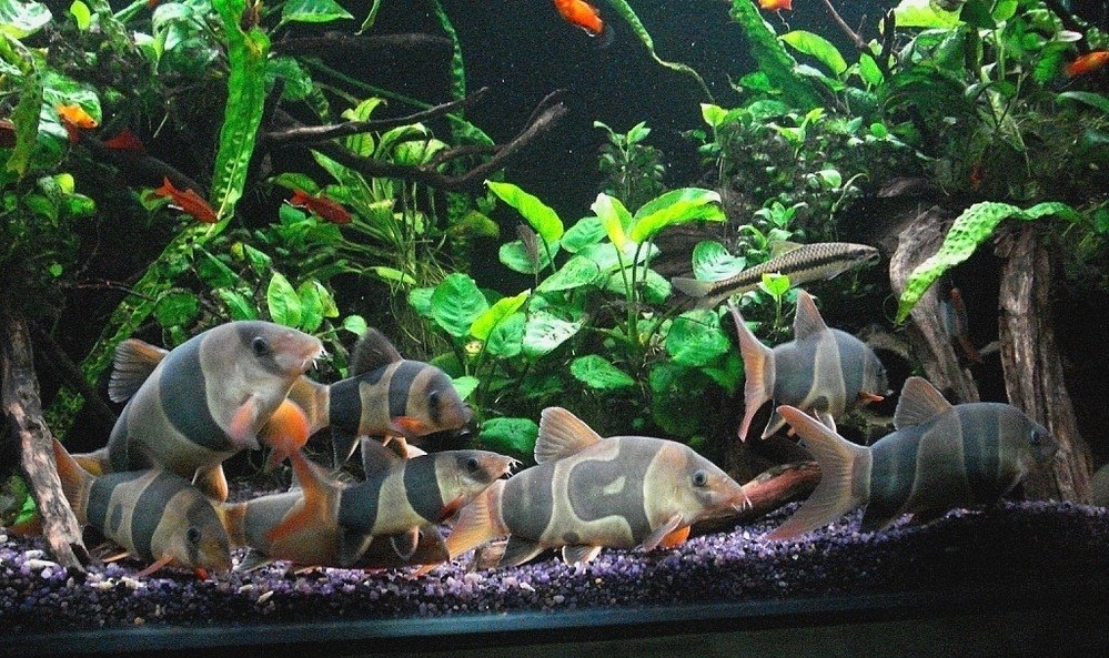 В основном аквариумные рыбки боции клоуны предпочитают большую часть времени проводить на дне аквариума, но когда они к нему уже достаточно привыкают, то могут подниматься и в средний слой.