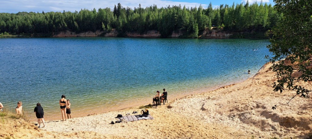 Это песчаный карьер с лазурной водой создан искусственно. Здесь живописные берега и густые леса вокруг. Вокруг карьера проходит экотропа «Лазурные воды» (охраняемая природная зона).