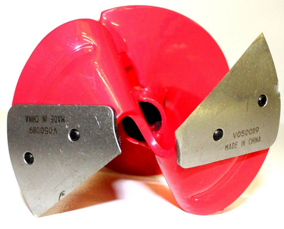 - Режущая часть – отвечает непосредственно за врезание в лед. В большинстве случаев представляет собой держатель с двумя прямыми или закругленными ножами, либо же режущую монолитную головку. Форма определяет эффективность бурения лунок во льду с конкретными характеристиками. Также на это влияет угол атаки и наклона ножей.