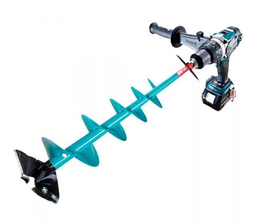 К электрическим моделям можно смело отнести шнек, закрепленный при помощи специального переходника в патроне шуруповерта.