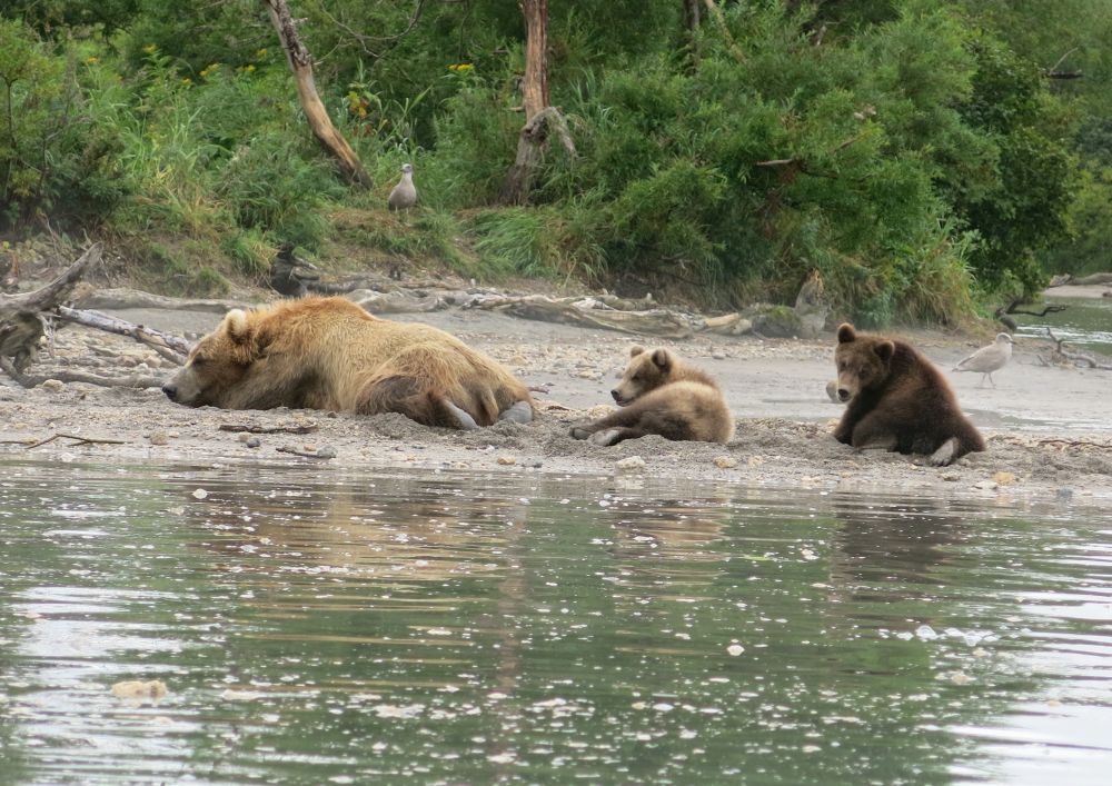 Но как же хватает места для нереста огромного количества чавычи? Всё просто. Чавыча идёт волнами. Но, в основном, не косяками, а тянется и тянется как бы тоненькими ручейками. В это время она не питается, безвозвратно атрофируется кишечно-желудочный тракт, место которого занимает дополнительный объем икринок и молок. Отнерестившись, самцы и самки, принимавшие участие в таинстве рождения новой жизни, сами погибают, освобождая места для следующей волны лососей. А медведи пируют на реке, орланы и другие хищники очищают нерестилища.