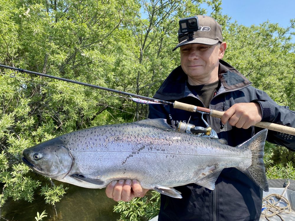 Выход тут один – бомбить приманками. В нашем конкретном случае оказалось, что она встала на нерест». Нам такая тактика определения «что делает чавыча» не очень понравилась, тем более, что на этом конкретном плёсе у нас уже случилось множество нереализованных поклевок. В общем, не стали больше впустую тратить время.