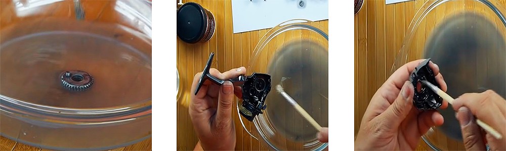 Далее очищаются все детали, после чего их нужно просушить, чтобы смазка для катушки от спиннинга легла уже на чистую поверхность.