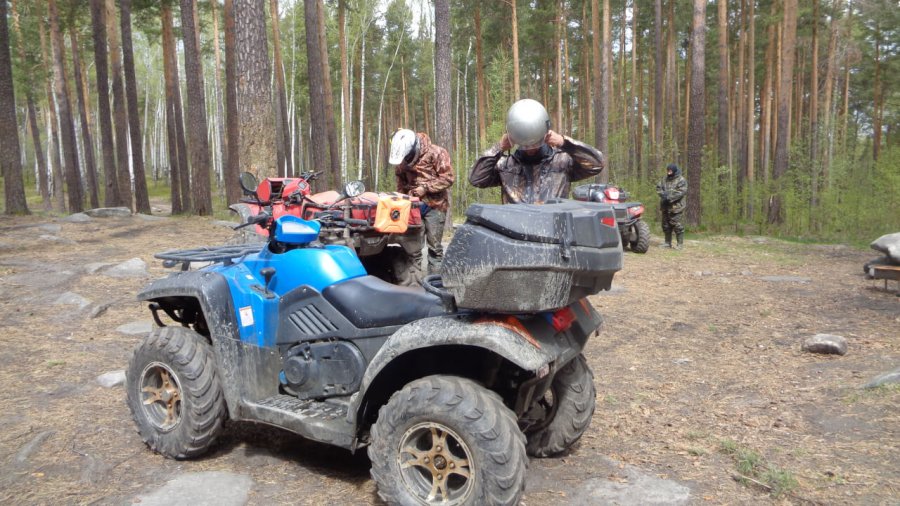 Начинается тур с переодевания на озере Песчаном в спецформу для квадрациклов и короткой инструкции по безопасности движения. Кстати, озеро Песчаное не очень большое, но очень уютное, в теплую погоду приятно посидеть на берегу. Нам с погодой не повезло. Поэтому мы на фото круглые, как колобки. Утеплились.