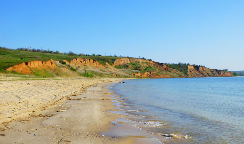 Пляж – песчаный и достаточно широкий. Вход в воду преимущественно пологий, но есть и резкие обрывы. Уклон по отношению к воде – минимальный, глубина набирается очень медленно. Зато вода прогревается максимально быстро, радует ее чистота. Правда, после шторма много зелени.