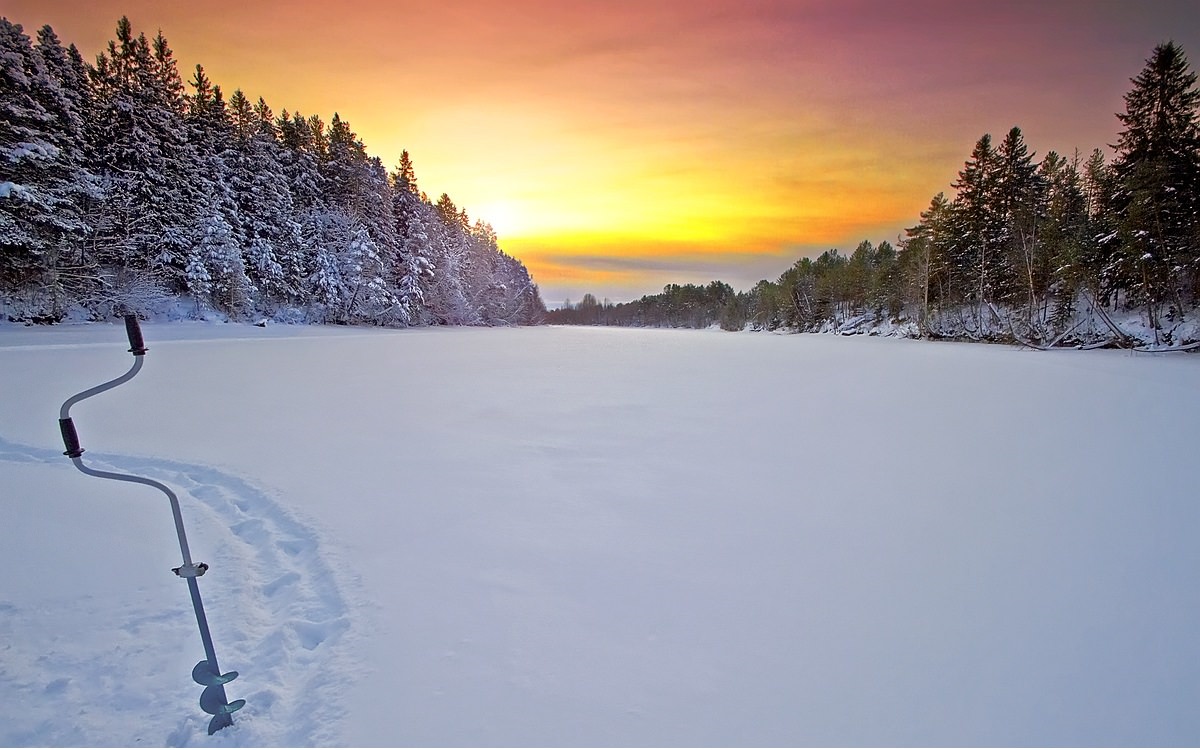 - Ледобур, с помощью которого делаются лунки во льду. Выбирайте тот диаметр, который позволит извлечь рыбу ожидаемого размера.