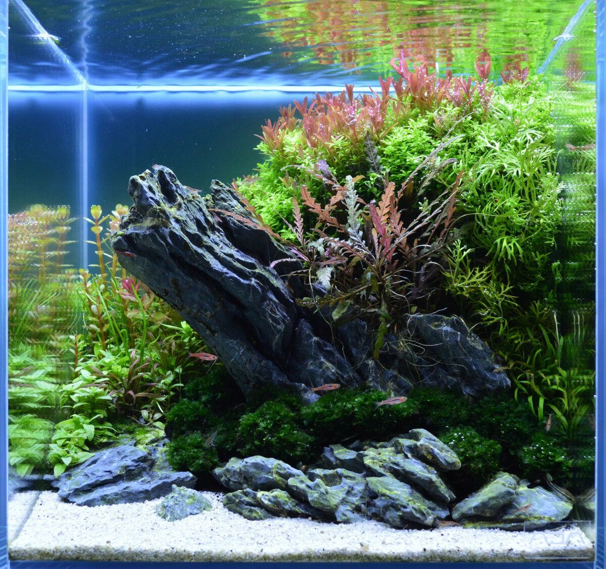 Если камни решено разместить в технике акваскейпа, то лучше выбирать неровные, фактурные и желательно темные. Камни без испещрений, с ровными гладкими краями выглядят неестественно. Пористая фактура камней будет давать лишние тени.