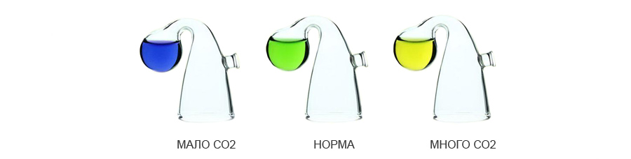 Важная информация! Если меняется уровень углекислоты, то цвет индикаторной жидкости меняется не сразу, а примерно за несколько часов. Учтите это!