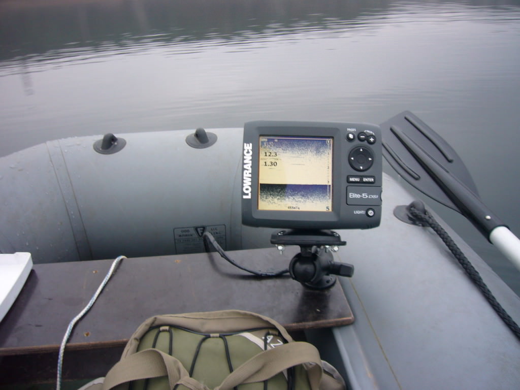 На весельных резиновых лодках без транцевой доски часто используют буксируемый трансдьюсер. В случае применения беспроводного устройства достаточно привязать его фалом, т.к. он имеет хорошую плавучесть, а конец закрепить за банку. В качестве дисплея можно пользоваться смартфоном, предварительно загрузив в него соответствующее приложение.