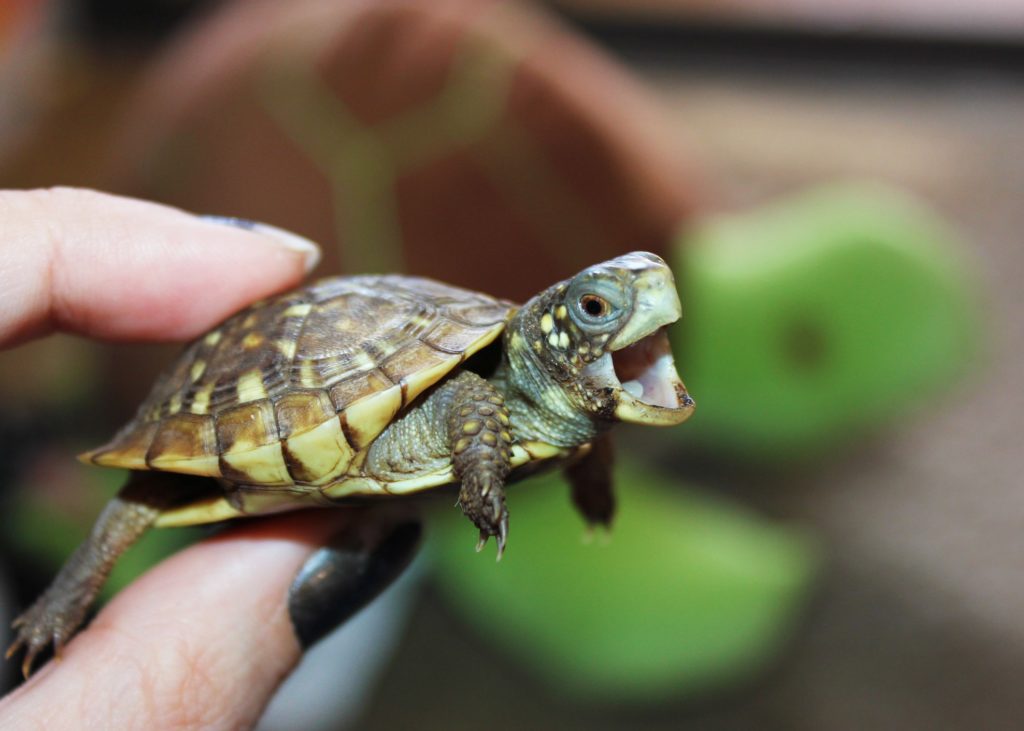 За несколько дней до этого она много ест и ищет себе место под искусственным солнцем, лучше, ультрафиолетовой лампой. В период с мая по август самка может откладывать яйца несколько раз, в каждой кладке их может быть 2-3. Закончив процесс, «мама» не ухаживает за своими детьми, а уходит обратно в водоем. Вылупившиеся через 2-3 месяца черепашата могут сидеть в своем убежище всю зиму, питаясь содержимым желточного мешка. Но это в природе. Для аквариума могут быть сделаны исключения. Малыши гораздо быстрее приобретают самостоятельность, поскольку погодные условия не оказывают влияния на параметры микроклимата в аквариуме.
