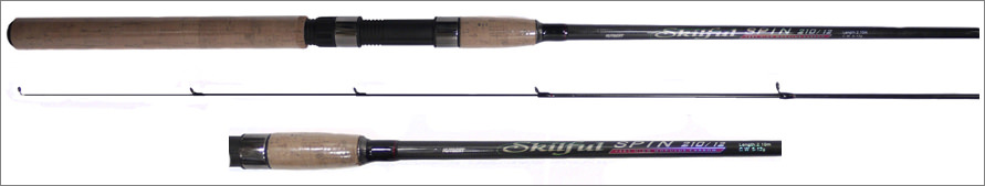 - Спиннинг ростом от 2,10 до 2,70 метров, в зависимости от условий рыбалки. Комель мощный, вершинка тонкая и подвижная, но надежная. Тест, как правило, колеблется в пределах от 5 до 40 граммов. Строй среднебыстрый;