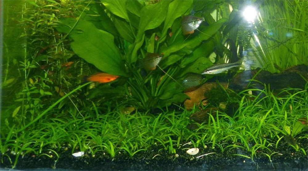 Эхинодорус нежный идеально впишется в декорации аквариума благодаря своему небольшому размеру. Это растение лучше высаживать на переднем плане и время от времени подстригать длинные листья. Так можно добиться эффекта сочного зелёного ковра, который украсит небольшой подводный мир Вашего аквариума. Главное помнить о том, что качественное освещение и хорошо заиленный грунт — это залог успеха для выращивания эхинодоруса нежного.