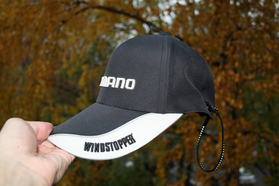 На голову, я одеваю бейсболку SHIMANO с мембраной Wind Stopper, которая не пропускает ветер, благодаря туннельной структуре пор.