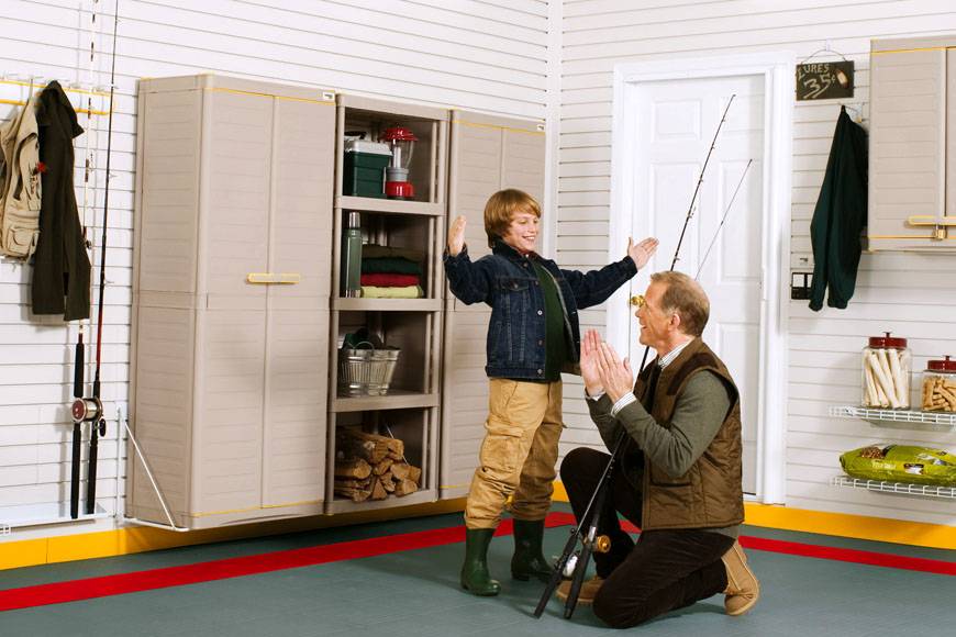 Аксессуары системы хранения GarageTek можно приспособить и для хранения снаряжения охотника.