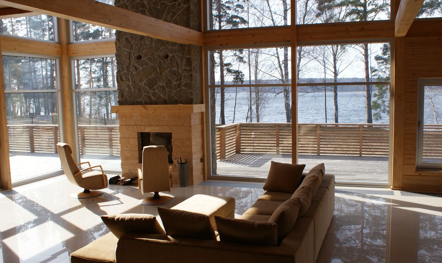 - лес, озеро, пляжи рядом, есть возможность охотиться, а зимой – кататься на лыжах и снегоходах.