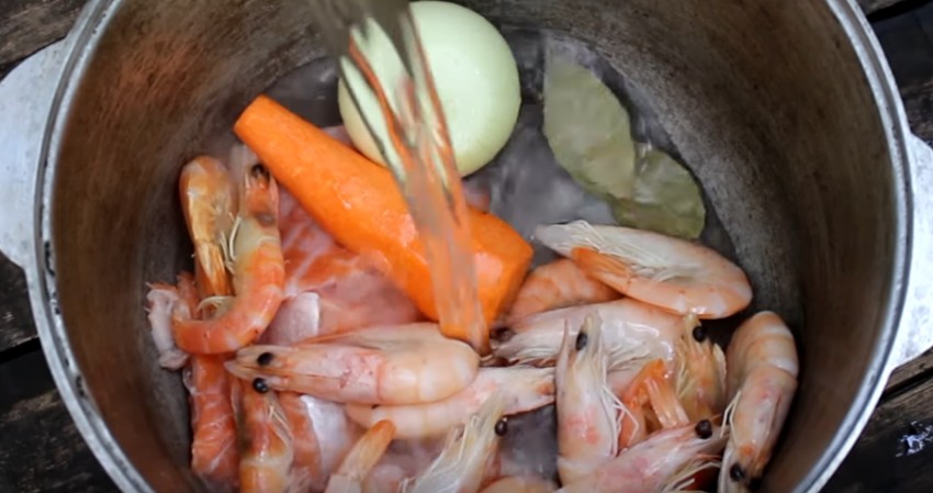 – иногда вместе с рыбой в кастрюлю кладут сырые креветки и мидии;