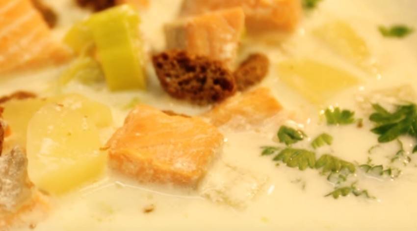 На предложенном ниже ролике в подробностях показан полный процесс варки финского супа с форелью.