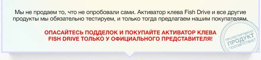 Изготовитель говорит о Фиш Драйве как о продукте, не имеющем аналогов. Производитель называет следующие преимущества активатора клева по сравнению с другими приспособлениями для ловли рыбы: