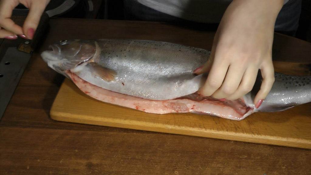 - если вы купили рыбу в охлажденном, а в замороженном виде, то разрежьте ее, не дожидаясь полной разморозки (чтобы она была слегка подморожена). Так вам удастся получить красивые и ровные кусочки.