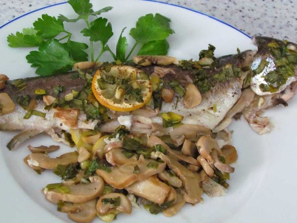 Радужная форель отлично сочетается с грибами. Приобрести можно обычные шампиньоны. В приготовлении такой рецепт несложен: