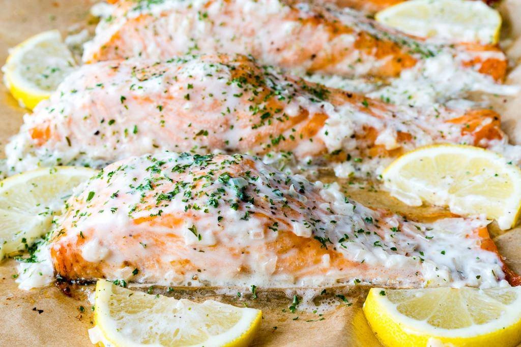 - Заверните тушку (или кусочки) в фольгу и приступайте к запеканию. При этом помните, что целая рыба готовится около получаса, а стейки — примерно 15 минут.