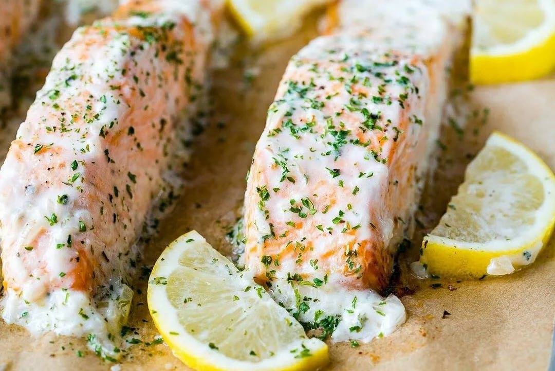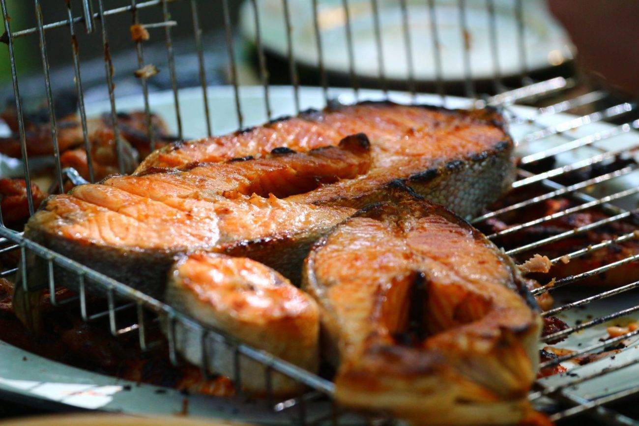 1. На мангале можно очень вкусно запечь семгу в фольге. Для этого нужно вначале промыть и очистить от чешуи стейки, затем натереть с обеих сторон их солью, перцем и любыми приправами. В качестве приправ лучше брать те, что для жарки рыбы.