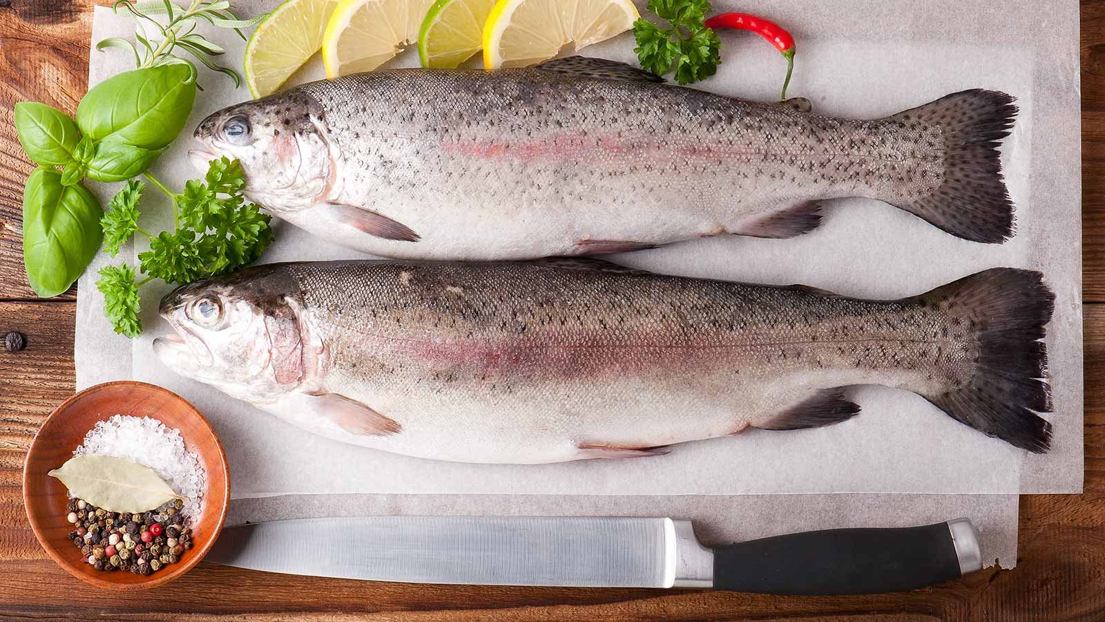 рыбы. Мясо форели содержит много витаминов (А, D, B12)