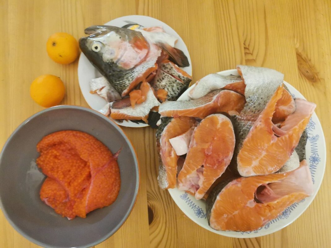 - тушки форели, небольшого размера – пять штучек;