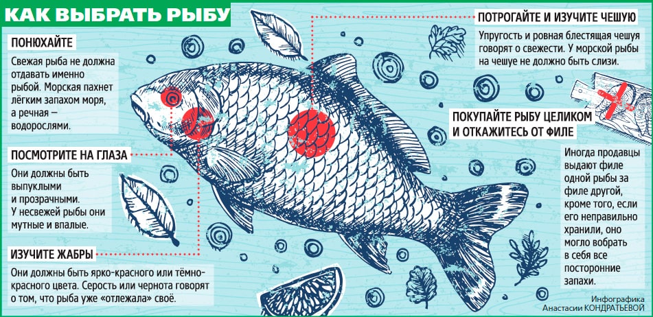 - будь то охлажденная или размороженная рыба, она не должна иметь яркого неприятного запаха;