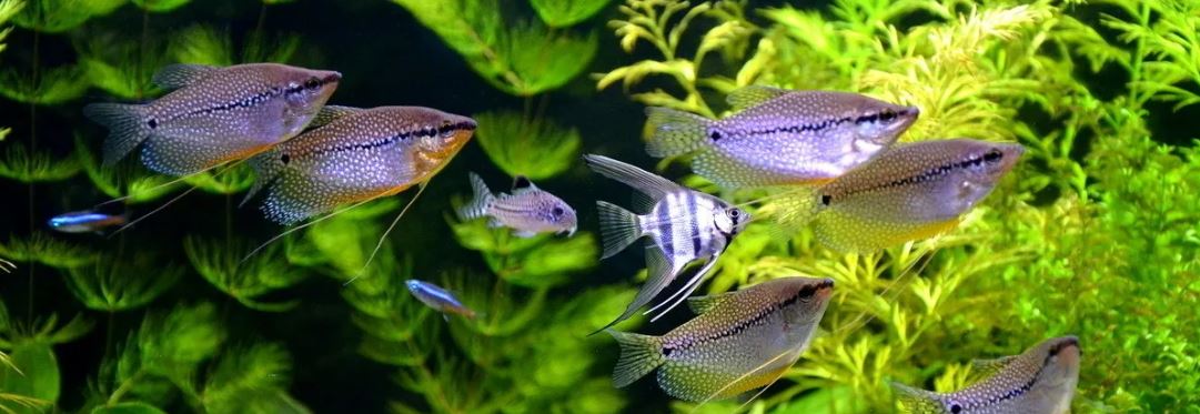 Как и все представители лабиринтовых, гурами дышат атмосферным воздухом, поэтому аквариум не должен закрываться наглухо – под крышку всегда должен поступать свежий воздух. Гурами — одни из самых неприхотливых аквариумных рыбок, причем разводить их также легко, как и содержать.