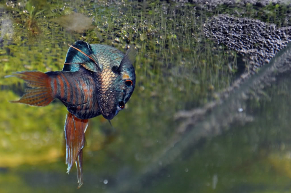- Плавающих растений должно быть поменьше, чтобы рыбки могли подплывать к поверхности воды, и чтобы внутрь аквариума хорошо проникал свет.