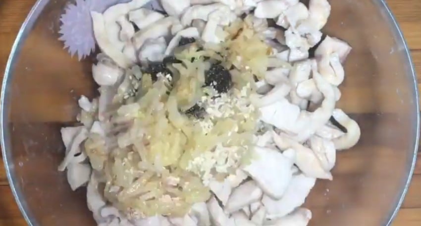 - Выложить в удобную ёмкость, добавить соль, сахар и уксусную эссенцию. Тщательно перемешать и оставить при комнатной температуре на 3 часа. Каждые 30 минут филе нужно хорошо перемешивать, тогда рыба хорошо пропитается специями.
