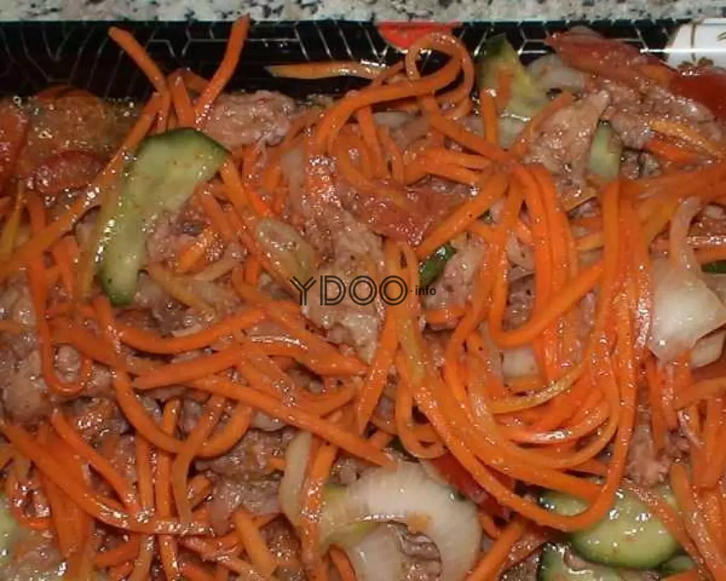- Помимо моркови и лука, стандартных элементов зажарки, при приготовлении блюда можно использовать дополнительные компоненты, такие как сладкий болгарский перец, топинамбур или отварная свекла. Некоторые гурманы предпочитают добавлять в хе небольшое количество сушеных грибов или маринованных огурцов.