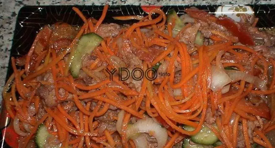 - Перекладываем хе на плоское блюдо и подаем к столу еще теплым.