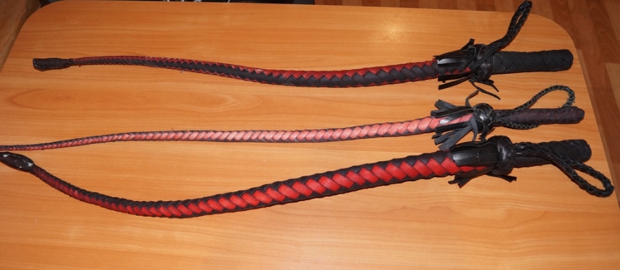 Определенно, первая нагайка из тех, которые вы сплетете, не будет выглядеть идеально. Опыт приходит со временем, чуть позже вы научитесь плести из шести, восьми и даже двенадцати полос, если захотите. Обычный стандарт, конечно, четыре, шесть или восемь. Но у нас в коллекции есть вариант в двадцать четыре полосы (не продаем, и сами повторять такое не хотим), но он исключительно выкуплен нами именно для коллекции.
