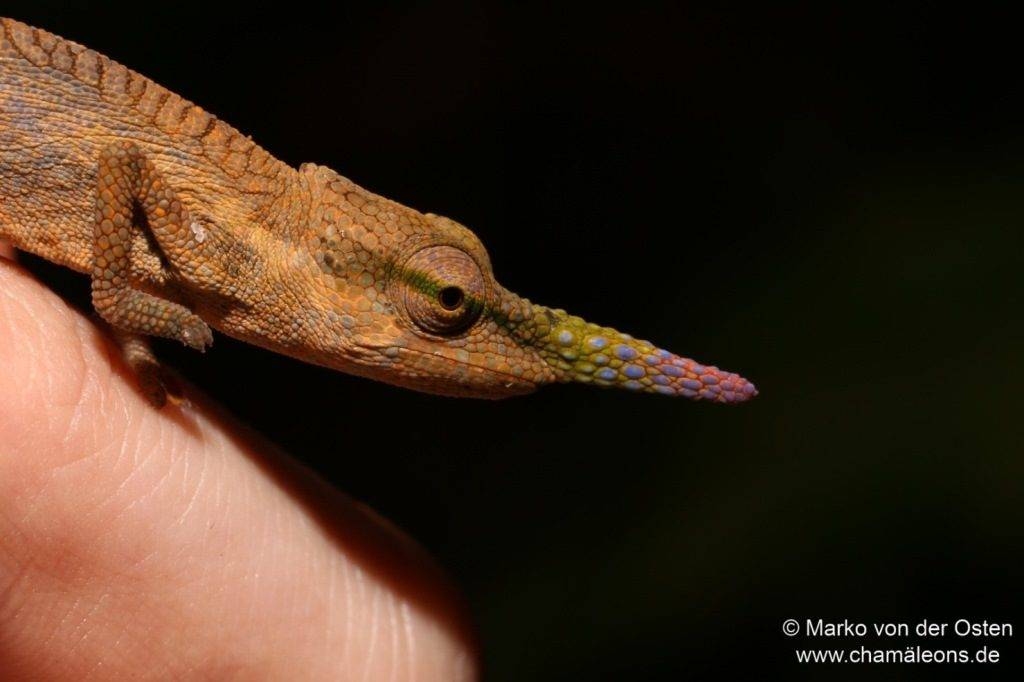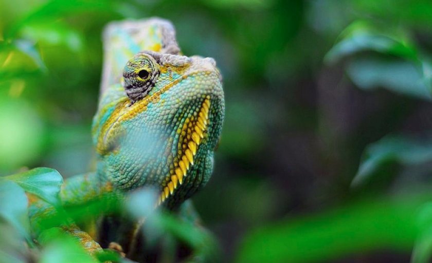 Часто бывает, что у представительниц женского пола он еле-еле выражен. Спину же и подбородок хамелеона защищают чешуйчатые шипы, которые постепенно уменьшаются в размерах по направлению к хвосту на спине и к брюшку на подбородке и шее.