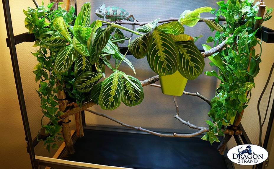 Не забывайте и о большом количестве зелени. Хамелеоны любят прятаться. Комбинируйте искусственные растения с живыми.