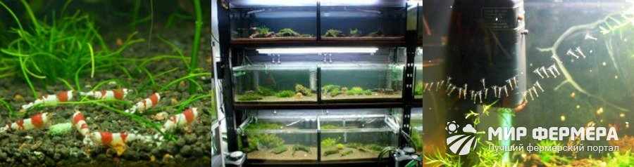Разведение аквариумных креветок гораздо проще организовать как в техническом, так и финансовом плане. Данные виды прекрасно размножаются в резервуарах объёмом 50–80 литров.